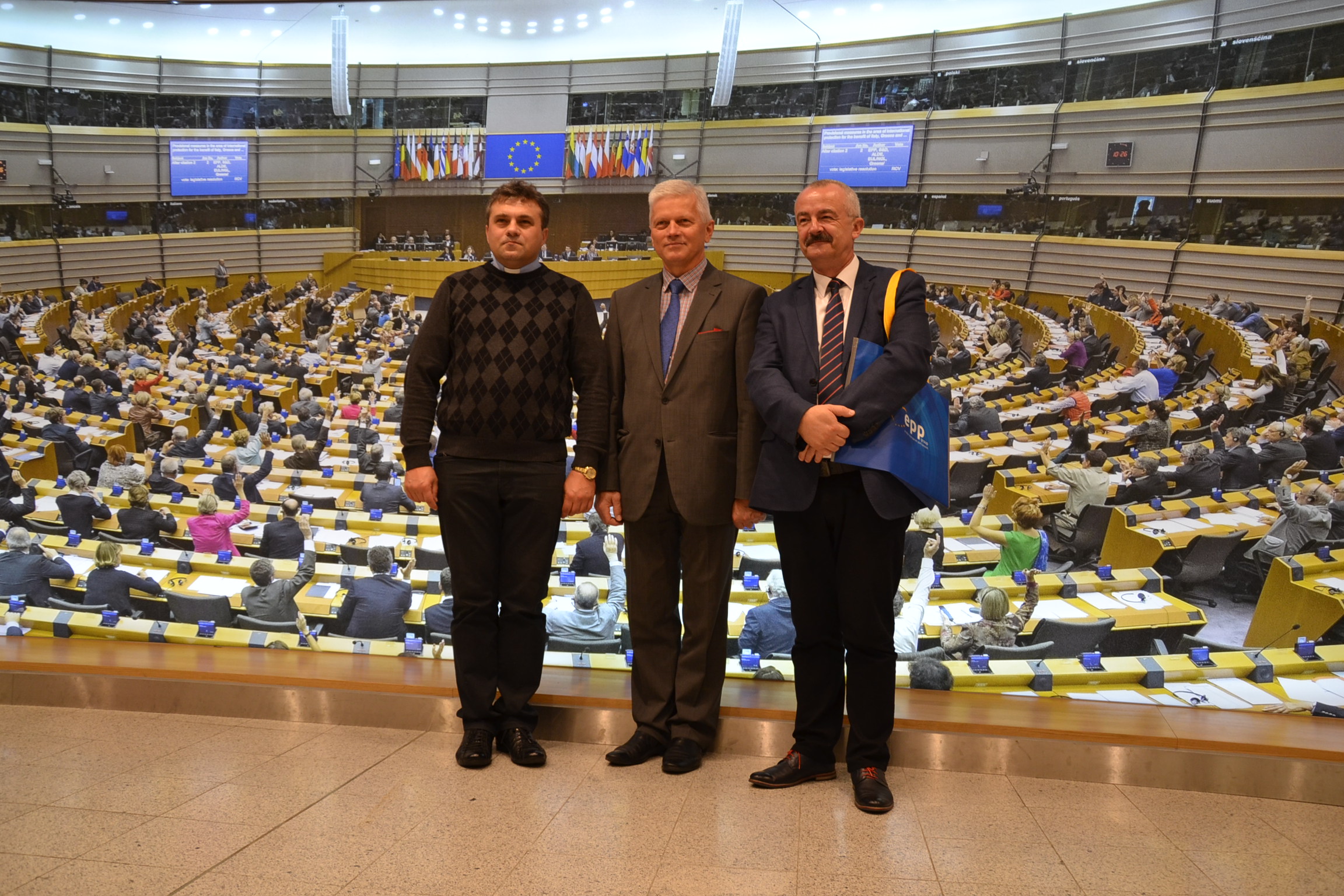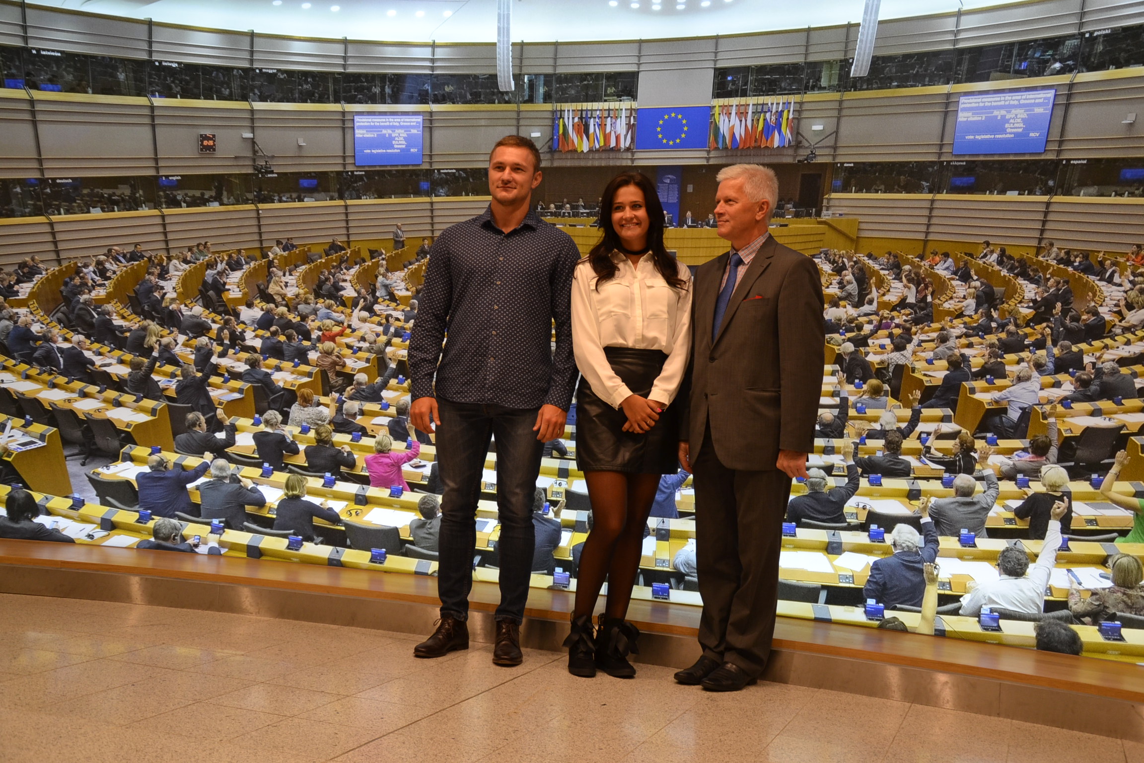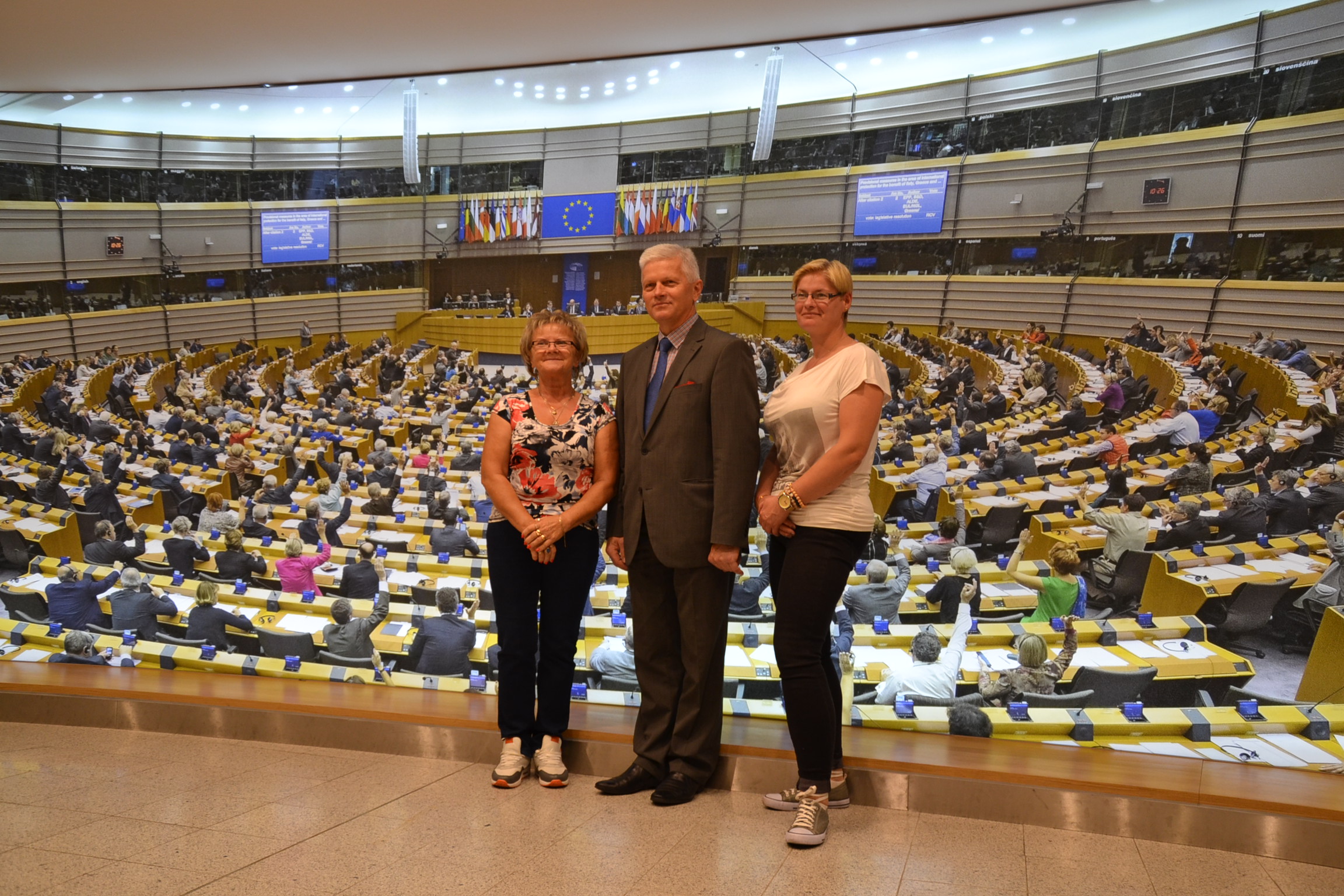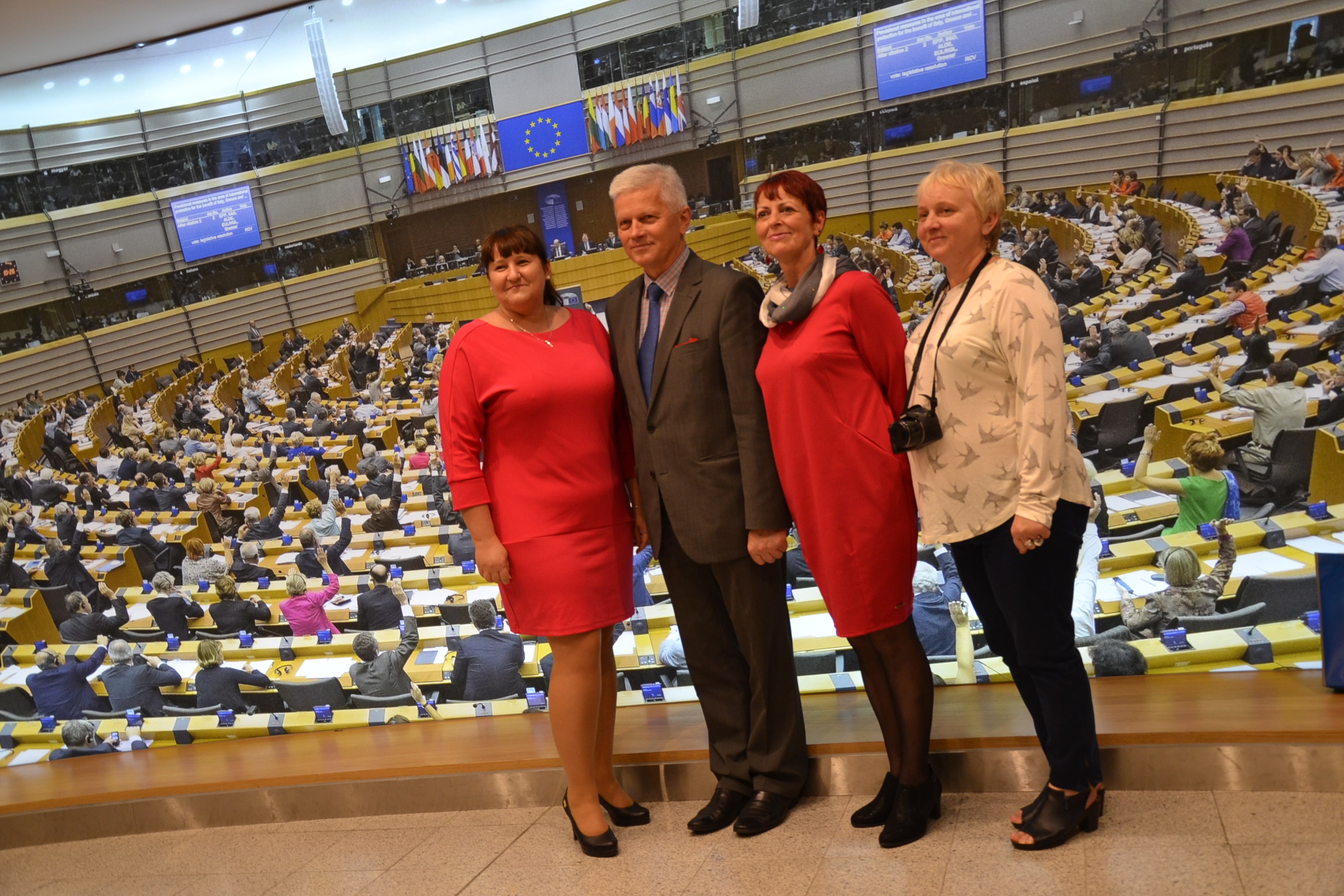 I ani się wszyscy obejrzeli jak nastała środa, ostatni dzień pobytu w Brukseli i siedzibie Parlamentu Europejskiego, po którym swoich gości oprowadzał poseł A. Grzyb i jego asystenci: Borys Brzeziński i Łukasz Wilkosz. Uczestnicy wycieczki mogli wejść na galerię sali plenarnej, gdzie akurat obradowała jedna z komisji PE. A później już tylko obiad w stołówce parlamentarnej, pożegnanie z gospodarzami i powrót do kraju.