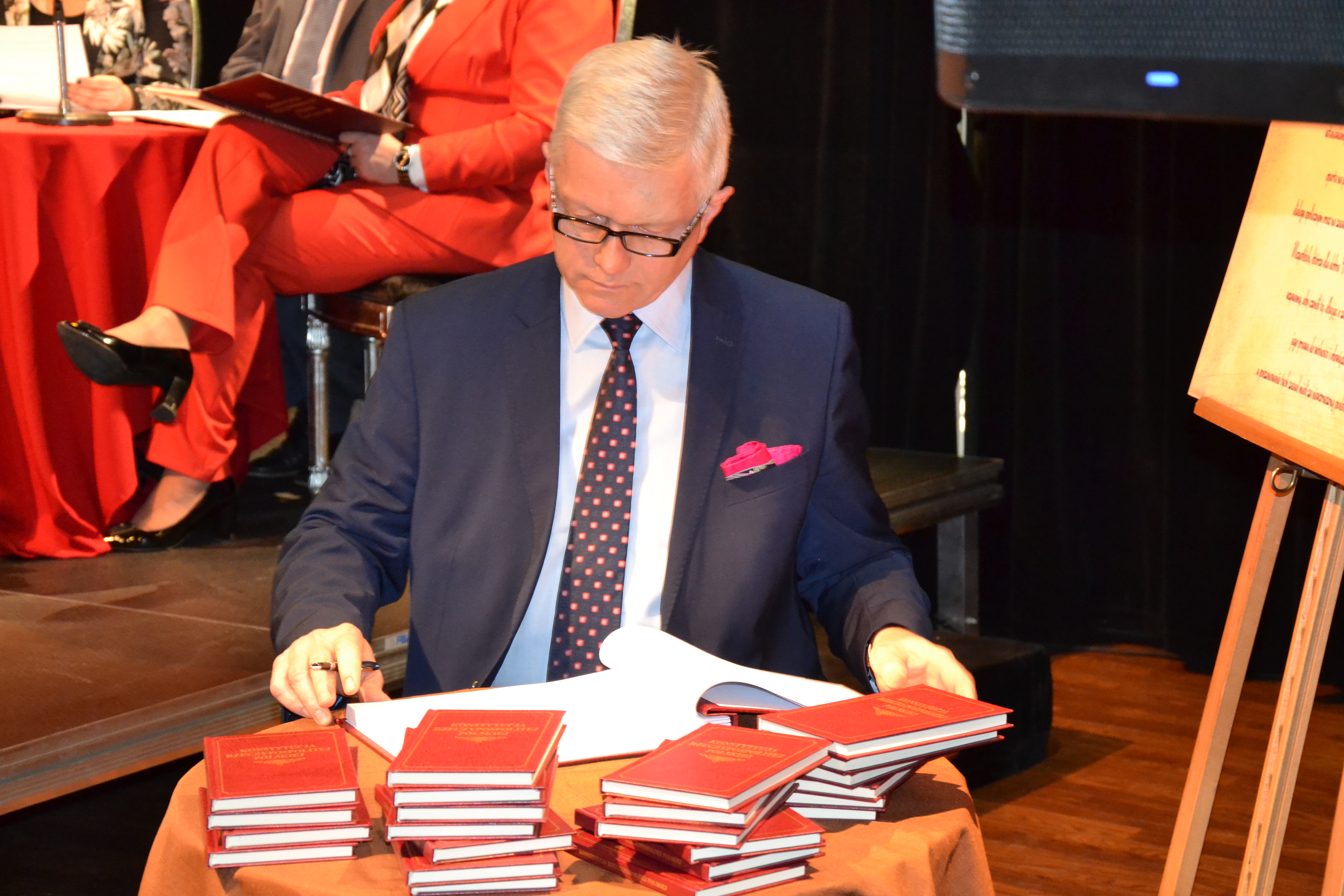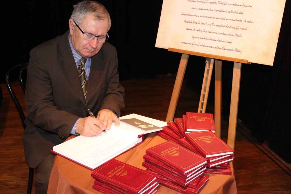 -Chcę serdecznie podziękować za to niedzielne, 2. kwietniowe spotkanie wszystkim tym z Państwa, którzy zechcieli poświęcić czas i na nowo odczytać tekst Konstytucji RP, który został uchwalony 20 lat temu. Ja byłem posłem II kadencji i członkiem Zgromadzenia Narodowego, bo tutaj też warto przypomnieć, to kto stał na czele tego Zgromadzenia- otwierali je Józef Zych i Adam Struzik. Zresztą popatrzcie Państwo, niezależnie od sympatii politycznych, Józef Zych jest człowiekiem leciwym, a kiedy się wypowiada, to jest w stosunku do niego estymę, niezależnie od tego, kto jest jego adwersarzem. Istnieje przekonanie, że uchwalenie Konstytucji RP było ważnym wydarzeniem. Potem 25. maja 1997 r. gdzie odbyło się referendum. Dwa referenda tylko we współczesnej Polsce, po zmianach, są ważne. Zostały podjęte przynajmniej przez ponad 50% obywateli. To nie jest łatwe zgromadzić ponad połowę obywateli do wyrażania swojej politycznej woli w jednym czasie w jednym dniu, żeby określili się w jednej sprawie. Konstytucja w momencie jej uchwalenie była mocno krytykowana. Nigdy nie ma aktów- tej rangi – żeby spełniały oczekiwania wszystkich. Ale chce powiedzieć, że powołując się na różne wydarzenia po jej uchwaleniu, to popatrzcie Państwo, ona odnosi się do wartości i zaczyna się od tego stwierdzenia „My Naród Polski. Słynne wystąpienie prezydenta Lecha Wałęsy podczas Kongresu amerykańskiego rozpoczęte słowami „My Naród”. To było ogromnie ważne. W Konstytucji też jest to stwierdzenie historyczne. Odnosi się do tysiącletniego dziedzictwa narodowego. Odnosimy się do wartości chrześcijańskich. Do tych, którzy są wierzącymi i do tych, którzy nie podzielają wiary w Boga. To stało się podstawą do podobnej Preambuły jeśli chodzi o Traktat Konstytucyjny, który nie wszedł w życie. On nie został w tej wersji polskiej Konstytucji, ale on jest wzorcem jeśli chodzi o wartości, o pochodzenie, skąd my jesteśmy- my Polacy, my Europejczycy. To jest niedościgniony wzór do dzisiaj. Węgrzy zmieniając swoją konstytucję wzorowali się na tej preambule dotyczącej wartości, na obecnej polskiej Konstytucji. Całkiem niedawno przyjęli nową Konstytucję, a tak to posługiwali się konstytucją z czasów komunistycznych. Wiec jeżeli czasami odwołujemy się do Węgier to możemy powiedzieć, że jest odwrotnie. Oni wiele zmienili, a w tej sprawie posiłkują się naszym wspólnym dorobkiem. Są słowa, które wydają się być kluczowe z punktu widzenia tej Konstytucji- godność ludzka. Godność, która obejmuje cały okres- od poczęcia, aż do śmierci. I możemy różnie to interpretować w zależności od swoje światopoglądu, ale niewątpliwe to jest podstawą tego wszystkiego, co odnosi się do osoby ludzkiej. I zobaczcie Państw jak całkiem niedawno było określone jaka jest flaga i godło i jaki jest hymn, że to „Mazurek Dąbrowskiego” jest polskim hymnem. A przecież to dopiero 90 lat temu, w 1927 roku, 26 marca, Polska przyjęła, że „Mazurek Dąbrowskiego” jest hymnem Polski, a wydaje się, że to całe lata, począwszy od 1797 roku, kiedy to Józef Wybicki napisał Mazurek Dąbrowskiego. Zwróćcie uwagę, jak się ładnie te daty połączyły. Józef Wybicki napisał w 1797 roku tekst i melodię, w 1927 roku uznaliśmy, że to jest hymn Polski, 1997 roku przyjęliśmy tekst obecnej Konstytucji RP, a dzisiaj mamy jej 20-lecie. Dla mnie najbardziej wzruszającym momentem, który przeżyłem, oprócz tego uchwalenia Konstytucji, to był 30 grudnia 1989 roku. Wtedy dokonaliśmy zmiany ówczesnej Konstytucji z 1952 roku. Wtedy-jak mówiliśmy wśród posłów- wyprowadziliśmy kierownicę z Konstytucji. Dla młodzieży, która nie pamięta to było stwierdzenie, że kierowniczą rolę sprawowała Polska Zjednoczona Partia Robotnicza. I wtedy też zapisaliśmy, że flagą Polski jest flaga biało-czerwona, ale godło to orzeł w koronie. I po przegłosowaniu o godzinie drugiej w nocy tej zmiany, premier Mazowiecki który siedział, wstał i zrobił gest Viktoria (znak zwycięstwa). To był najbardziej wzruszający moment z tamtego czasu. – wspominał Andrzej Grzyb obecnie poseł do Parlamentu Europejskiego, a 20 lat temu poseł na Sejm RP II kadencji.