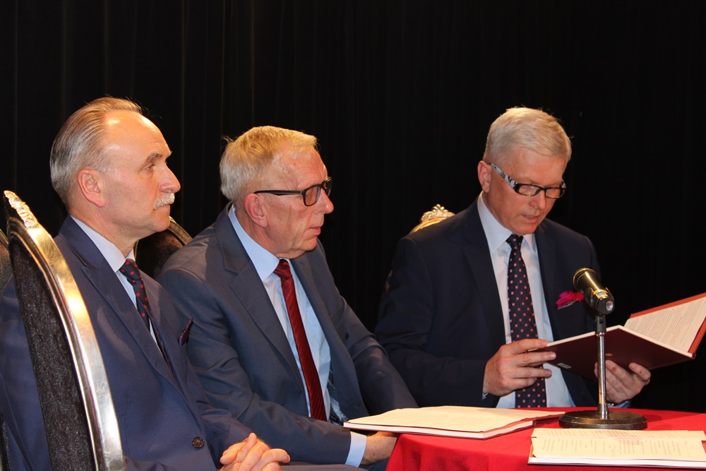 – Dziękuję za to, że przyjęliście zaproszenie samorządu powiatowego. Pomysł to nawiązanie do tego kiedy obchodziliśmy 20-lecie prawa geodezyjnego. Będąc posłem zorganizowałem takie spotkanie w Sejmie, które było niezmiernie owocne i wtedy świętowaliśmy przyjęcie prawa geodezyjnego. Nie czytaliśmy go, bo to reguluje dość zawiła ustawa, ale również oparta na Konstytucji RP. Już wtedy wiedzieliśmy, że pomysł przypomnienia o tym co jest zapisane w Konstytucji, jest niezmiernie ważne. Ja pamiętam jak wprowadziłem ustawę o gospodarce nieruchomościami, ile trzeba było trudu włożyć w to, żeby posłom powiedzieć, że odszkodowanie za grunty wywłaszczania ma być słuszne, a przecież to jest zapisane w Konstytucji. Także posłowie nie wszyscy czytają i wiedzą jak czytać i rozumieć Konstytucję. Naprawdę mam wyrzuty sumienia, że przez moją wieloletnią prace temat Konstytucji był zaniedbany w szkole, w domu, w społeczeństwie. Część ludzi błędnie myśli, że w rozmowach o Trybunale Konstytucyjnym chodzi tylko o stanowiska. Ta wiedza o tym jak ważny jest zapis w Konstytucji jest niezmiernie ważna. Dla ludzi starszych, którzy pamiętają tamte czasy, gdzie wyroki nie były ferowane na sali sądowej, one były ferowane w innym budynku. Po to walczymy o to, żeby prawo było niezależne, że Konstytucja jest wartością i są w niej zapisane najważniejsze prawa i tego trzeba uczyć młode pokolenia- mówił Józef Racki wieloletni poseł na Sejm RP