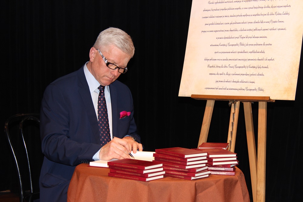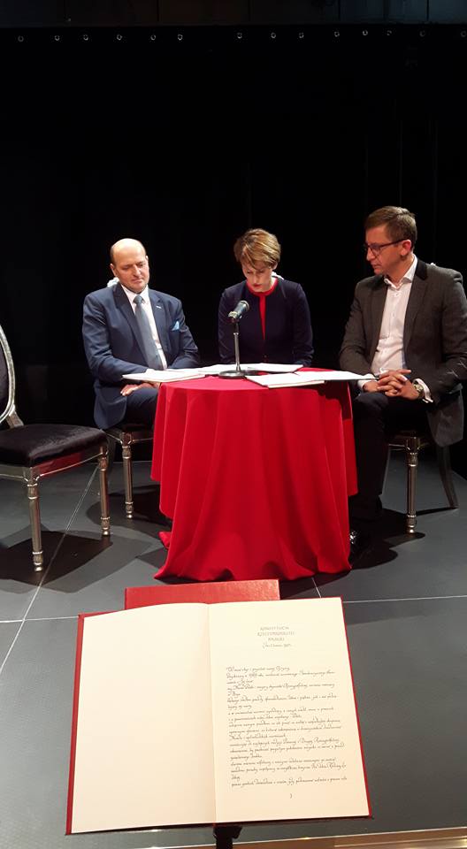 „To był historyczny moment, który już się nie powtórzy” – mówił starosta kaliski Krzysztof Nosal na podsumowaniu powiatowych obchodów 20-lecia uchwalenia Konstytucji RP. Dokładnie 20 lat temu,2 kwietni 1997 roku, Zgromadzenie Narodowe- organ konstytucyjny obradujących wspólnie posłów i senatorów, uchwaliło Konstytucję RP, która została zatwierdzona w ogólnonarodowym referendum 25 maja 1997 roku. Powiatowego obchody tych wydarzeń połączone z odczytaniem obecnej konstytucji odbyły się w Centrum Kultury i Sztuki w Kaliszu. Fragment przeczytał także Andrzej Grzyb, obecnie poseł do Parlamentu Europejskiego a wtedy poseł na Sejm RP, który w czasie spotkania przypomniał jak wyglądały prace nad dokumentem.
