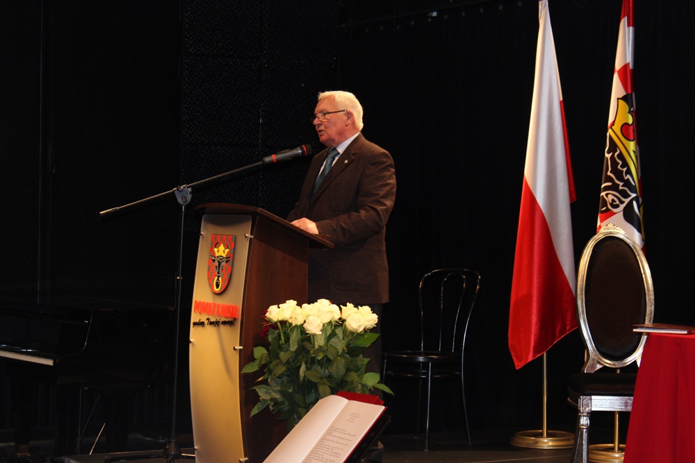 Powiatowe obchody rozpoczął niezwykle wymowne sowa Świętego Jana Pawła II „Potrzeba nieustannej odnowy umysłów i serc, aby przepełniała je miłość i sprawiedliwość, uczciwość i ofiarność, szacunek dla innych i troska o dobro wspólne, szczególnie o to dobro, jakim jest wolna Ojczyzna”.